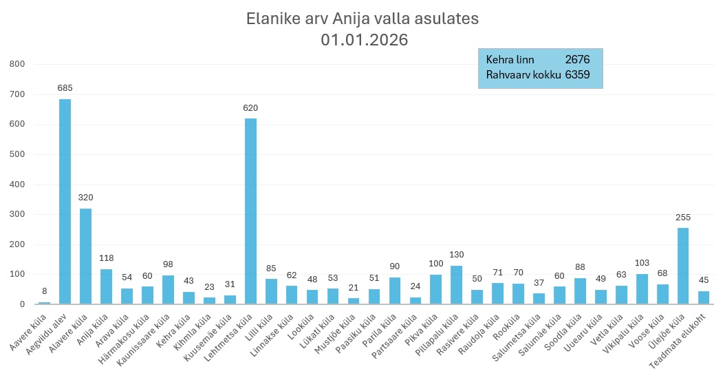 Anija valla asulate elanike arv 01.01.2025 seisuga